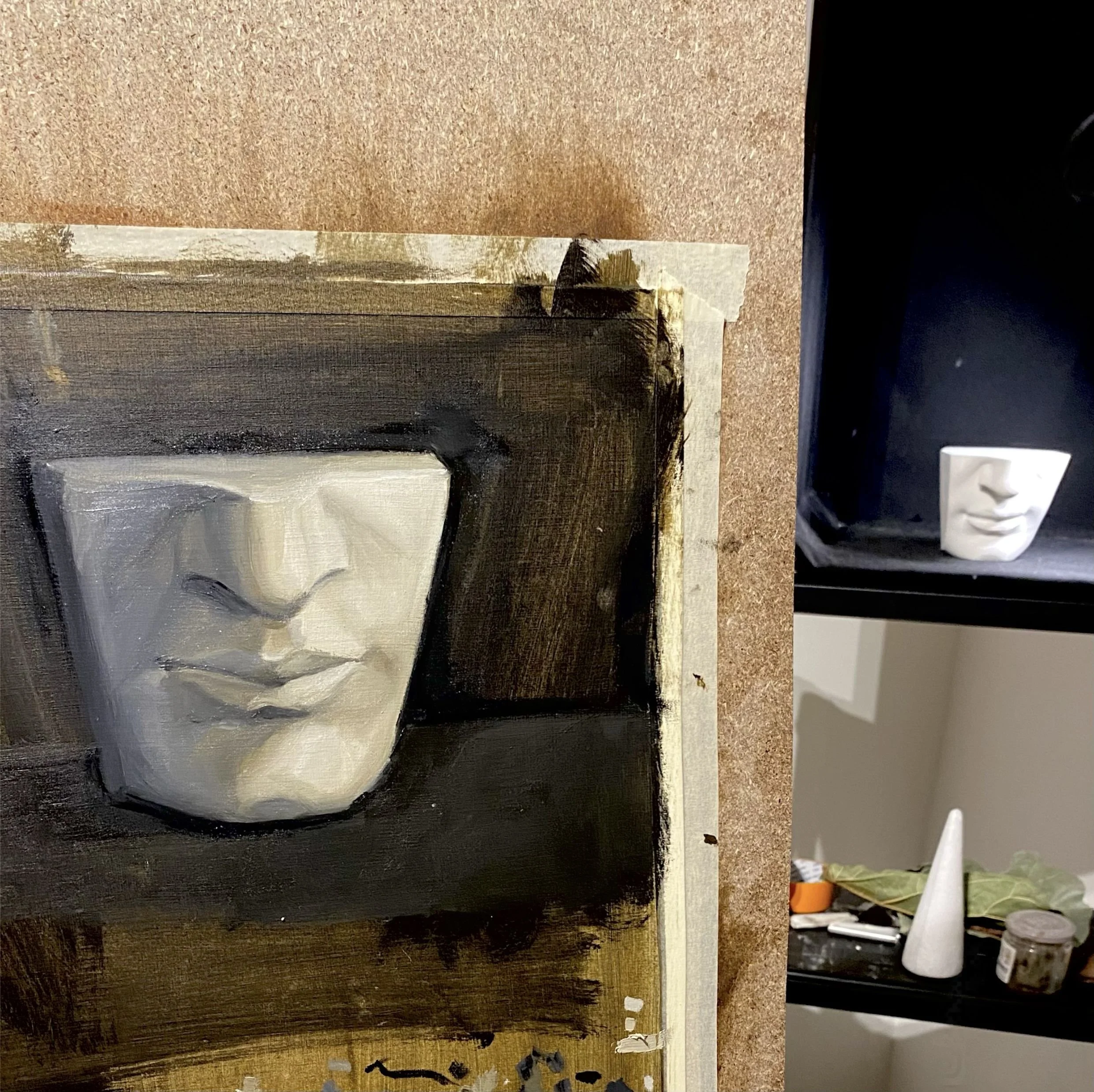 The first class focuses on techniques for achieving fast and accurate proportions using simple objects, then takes students through observing values and defining edges through brushwork. It’s a deceptively tricky exercise as inorganic objects must be rendered accurately and with great care in order to achieve the illusion of structure and dimension.